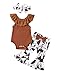 FEATURE: Cow print bottom outfits for baby girls, baby girls flared pants set summer, solid ribbed cotton romper, bow decoration and western style pattern bell bottoms pants clothes, cow costume toddler baby, cow outfits for toddler girls, cow print flare pants baby girls.