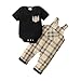 Unique Design: Solid color top with stylish plaid pockets for a handsome look; single button design for easy on and off; Overalls Suspender Pants sturdy button design for easy nappy changes; buttons on the shoulder straps allow for length adjustment and the large pockets on the overalls give it a lovely look, your little one will look even more sunny and handsome in it.