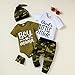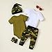 Package --- 2pcs short sleeve rompers+ 1pc camo pants+ 1 pc hat+ 1 pair of mittens. 5 pcs summer outfits set for baby boys.