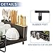 【Large Capacity】The whole dimension of the large 2-tier dish rack is 16.54" L x 11.8" W x 10" H. The top layer can accommodate up to 9 dishes, and the bottom layer can organize not only bowls, cups, mugs, bottles, but also small pans, pots, fruits, etc. The removable utensil holder of kitchen dish drying rack can collect forks, chopstick, tablewares and so on.