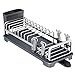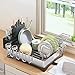 【Large Capacity】This dish drying rack with drainboard can store most of the kitchenware, such as plates, bowls, mugs, cups, thin pans, lids, bottles, the removable utensil holder can organize forks, knives, scissors, etc. the large capacity will completely fulfill your storage need.