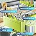 【Extra Large Capacity】this multifunctional dish drying rack with drainboard comes with expandable tray. the main department of the rack can organize bowls, plates, cups, mugs, pot lid, pans, etc. the detachable cutlery box can hold chopsticks, knife, forks and so on.