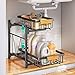 【Sturdy Construction】 This dish drying rack and drainboard set is made of premium carbon steel with a black powder finished. The solid and sturdy construction will provide a strong load-bearing to store all your kitchenware easily, and it's rust-proof and long-lasting enough to use in your kitchen.