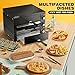 Wide application:122-662℉ adjustable temperature of the indoor pizza ovens countertop, can bake pizza (up to 14in),pretzels,egg tarts,bread,cakes, pies, pastries and chicken wings,etc..