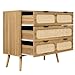 【Modern design】 The 3-drawer dresser with simple design. Various decoration styles are compatible with this modern minimalist 3 drawer chest. Adding rattan door and classic gold metal handle to the simple monochromatic wood panel adds advanced aesthetics to this product.
