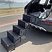 ✅【Easily Use & Multi-function】: The 4 steps dog ladder is perfect for your dog’s entering or exiting cars, sedans, SUVs, minivans, trucks, beds, couches, grooming or vet tables, also can be used in some side entry vehicles (opening of 22"+). When you use it, only need to put the foam handle on the back of trunks or cars then connect the stainless carabiner and tailgate latch.