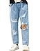 Classic solid blue destroyed knee hole baggy jeans for teen girl,kids,pair with crop top,blouse shirt,tee,camisole