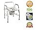 DURABLE AND RELIABLE folding steel commode. Bedside commode chair made from durable grey powder coated steel welded construction for durability and strength, snap on toilet seat and lid made from durable plastic for easy cleaning.
