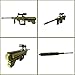 PHYSICAL PARAMETERS: size: Desert Eagle Pistol form: 8.7''x4.8''(22.2x12.2cm); AUG Assault Rifle form: 12.4''x4.1'' (31.6x10.5cm); AWM Rifle form: 13.7''x3.9'' (34.7x9.9cm). Material: ABS plastic. Number of blocks: 202 pieces. Package Include: 1 set of pistol building blocks, 1 building instruction. For age range: >6 years old.