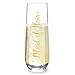 Bridal Glassware Set - This bridal edition set of 8 includes 1 bride flute, 1 maid of honor flute and 6 bridesmaids flutes. The sleek stemless champagne flutes feature gorgeous gold lettering and are a unique must-have for bachelorette parties, wedding parties and bridal showers!