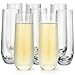 Champagne Glasses Set - Each champagne flute holds 9.3 ounces. Made of high-quality glass for maximum durability, and a stemless design for easy storage and cleaning. Freezer-safe and dishwasher-safe.