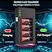 🔋【𝗠𝘂𝗹𝘁𝗶𝗽𝗹𝗲 𝗖𝗵𝗮𝗿𝗴𝗶𝗻𝗴 𝗢𝗽𝘁𝗶𝗼𝗻𝘀】: This battery charger using general USB cable and micro usb port input(5V/2.1A), can charge wherever there is a USB jack or cable by just connecting with your laptop, car adapter and power bank. Gives you more options than a standard battery charger. The Micro USB charging cable is built-in in the charger station.Makes It Convenient For You To Charge Whether The Charger Is Left Anywhere