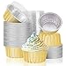 Pack of 50 Sets: You will get 50pcs aluminum foil cupcake liners with 50 matching transparent lids. The foil cup's size: 2.56"x2.56"x1.45". Capacity: 5oz (125ml).