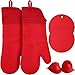 GREAT DESIGN AND HIGH QUALITY – 7.5 inch length protects wrists and forearms; all oven mitts and pot holders are a combination of silicone and cotton for maximum flexibility and maximum heat protection; soft and super comfortable terry cloth interior.