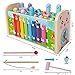 🌈【8 in 1 Wooden Educational Toy】- Rabing Pounding Bench toy provides 8 ways to learn and play, such as tapping the colored head to practice strength and reaction ability, moving gears to practice the flexibility of the little fingers, and pressing the xylophone to practice sound You can also play fishing games, caterpillar catching games, driving on winding trails and adjusting the hands of the clock.
