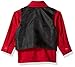 A HANDSOME TUXEDO. The fully lined, notch-lapel jacket has a classic two button single-breasted front and a satin lapel for a sophisticated shine, while the pants have elastics on the side to ensure a good fit even as your child grows. Both the jacket and the pants are made from 100% polyester for comfort, durability, and easy maintenance.