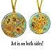 FINE ART DESIGNS: Artfully designed keepsake ornament showcases van Gogh's famous oil painting, "Sunflowers." The design is captured with an artist’s eye for detail, light, and color. Different views of the art appear on the front and on the back.