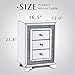 【Elegant Design】We add diamond accents on our mirrored nightstands, at the same time shining crystal handles, which is a unique decoration, and complete mirrored finish add beauty to the room. The silver table is really a unique and perfect decoration for bedroom and living room. The size of 16.5x12x23.8 inces.
