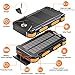 🌎【Durable Design for Outdoor】Solar battery pack is made to be IPX65 Waterproof/Dust-proof/Shockproof, which can withstand the harsh environment outdoors. And the solar powered charger equipped with Dual super bright LED flashlight, a Must-Function for outdoor activities and home emergencies.