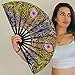 【Bamboo Fan Fature】Foldable and Portable 13inch Large Bamboo Hand Fan,We use fluorescent ink, which makes the fan having a wonderful glow under UV lights (party blacklight),colors will never fade.With a fast wrist-snap open the fan provides the ultimate clack sound,While being a cooling accessory for hot and humid weather or Sun Shade.