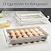 🍳【Take It Home】You will enjoy 30 days unconditional return or exchange of our goods! Please make sure that the depth of your refrigerator shelf is between 11.3-18.4 inches, and the thickness of the shelf must be under 0.6 inches. The 18 egg holder for refrigerator fits most standard size refrigerators.