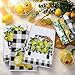 Plaid Lemon Design: the yellow kitchen towels are mainly designed in black and white grid, printed with lemon pattern, bright and fresh, cute and adorable, can bring you a good mood when using