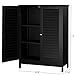 Getting Rid of Clutter: With our bathroom cabinet, you can hide bathroom supplies in the space behind louver detailed doors, there are 2 interior shelves and one with 3 adjustable heights to meet various storage needs