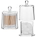 Ideal Size Bathroom Accessories: rejomiik qtip holder Item Includes 2 packs, 3.31" Wide, 4.41" Height, Clear glass jar with lid dispenser for such as Q-tip, cotton ball, cotton swab, cotton rounds, floss picks, tampon, bath salts, hair tie band, makeup brush, beauty egg, face brush, crayons, candy, pens, clip, and more small things