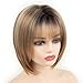 【Short Wig with Bangs】This brown ombre blonde wig adopt the high-quality heat resistant synthetic fiber, soft and smooth touched, just like your real hair, durable enough for a long term use