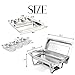 Complete Catering Set: This Disposable chafing dish buffet set includes everything necessary for a successful banquet, from food plates to service supplies. A total of 32 pieces, including 4 half size food pans, 4 half size water trays, 4 wire racks, 4 sets of tableware (tongs, forks and spoons), 4 wind guards and 4 fuel cans that each burns up to 2.5 hours