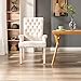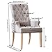ELEGANT DESIGN: The back of the dining chair is wide at the top and narrow at the bottom. The back is decorated with buttons. The edge of the seat is studded with rivets.