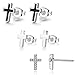 One pairs with highly polished surface; one pairs with small CZ inlaid (cross cubic zirconia stud earrings are made of 925 silver) and the other with black and silver cross ear stud for women;