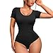 -★SHORT SLEEVE ROUND NECK BODYSUIT TONG:Our slimming bodysuit for women with classic tank top scoop neck design,helps show clavicle, neck, chest and face in better proportions.This thong leotard bodysuit has comfort butt lifter thong to showing nice butt curve,make hips looks bigger,fuller and sexier.Adjustable hooks around panty area is convenience access bathroom use, easier to put it on & off. You'll get a slimmer feminine silhouette and many compliments under this tummy shaper bodysuit.