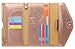 Travel Organized - Roomy and Collected, 1 passport pocket, 1 boarding pass compartment, 7 credit cards slots, 1 id slot, 1 sim card pouch, 1 coupon ticket slot, 1 cellphone pouch (max 5.8 inches), 1 money & coins zippered pocket (fit U.S. money), 1 key holder and 1 pen holder, 1 slim pocket
