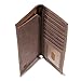 Six credit card pockets, side pocket, bill pocket lined with brown cotton duck fabric, ID window with thumb slide, triple needle contrast stitching