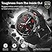 STURDY BODY SPECIFICALLY BUILT FOR MEN--The tactical smart watch has passed 12 military-grade tests, is made of a micro-blasted metal frame and titanium body, renders it highly resistant to vibration, drop and car-crushing. With a high strength tempered glass that is scratch and wears resistant without the need for a protective film, allows you to be more active outdoors, enduring tough conditions