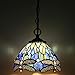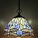 💡【Product Material】Lampshade handmade, With high-quality stained glass copper foil tin wire welding, Black paint 59 inch hanging chain, UL certified wire length 181 inch, On-line push button switch.