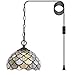 💡【Product Material】Lampshade handmade, With high-quality stained glass copper foil tin wire welding, Black paint metal junction box, UL certified wire length 59 inch, Hardwired,Wall switch.