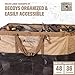 Features - Includes a built-in hard sunglasses case, a water bottle pocket, a cell phone pocket with rainproof zippers, an internal ammo compartment, clear internal storage pockets, and much more