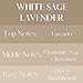 White Sage + Lavender is a relaxing scent with notes of lavender, chamomile and hints of white sage, sandalwood and cedar