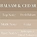 Balsam + Cedar has the uplifting aroma of majestic balsam fir and cedar supported by notes of lemon and a touch of mint.