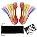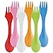 3 IN 1 CLEVER & PORTABLE SPORK FLATWARE: Upon designing this 12 spork set we tried to make it extremely convenient to be used by all people of all ages! Each uniquely colored spork has a spoon side to eat your nutritious soups and jellos, a fork to grab sausages or that freshly caught fish and a serrated edge used as a knife of course to cut and peel fruit and anything else that comes in mind!