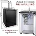 CONVENIENT DESIGN FEATURES: The sleek black kegerator cabinet features a stainless steel door for a modern look that will complement any decor. The easy roll casters make moving the unit from room to room a breeze, and they lock to prevent it from rolling once it's in position. The removable recessed drip tray with plastic grill can be easily taken out and cleaned in the dishwasher, and an attractive chrome safety rail helps prevent mugs and glasses for sliding off of the countertop.