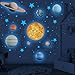 Glow in the Dark Stickers - Solar system planets wall stickers have 158 pcs in total.Include satrs,the sun, the moon and the other 8 planets, which can be freely combined. It’s a lovely graphic decoration during the day and glows in the dark at night.