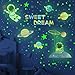 【Glow in the Dark Stars】Robmoda dream sweet glow in the dark stickers including 175 pcs stars, 637 pcs dots, 4 pcs planets, 2 pcs astronaut. The biggest astronaut size is 9*11 inchs, these decals enough to cover the whole ceiling of your kids’ room, in the dark the room become to starry shiny bedroom.