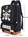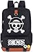 FEATURES: Zipper and plastic quick release buckles closure. Adjustable padded shoulder straps. The artificial leather anti-theft flap printed with the Anime One Piece theme .