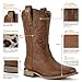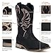 These cowboy boots for women feature a classic stitch embroidery design and a retro western style, which is fashionable and versatile. The stylish pointed toe with a traditional western stacked heel and long-wearing rubber sole for a more comfy feeling. Dual pull tabs for easy on and off.