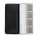 Stitched black faux leather business card book features fold-out style, 96-card capacity and metal-tipped corners.