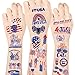 【Easy to Use】 Place Independence day temporary tattoo face down on your skin, soak the tattoo, wait 20-30 seconds, gently peel off the paper, and then make the tattoo dry. You can stick it anywhere on the skin you want. Tattoo sticker can stay for 2-3 days, but if you want to remove it, you can rub it with baby oil.