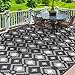 🌞Reversible Design: Our outdoor rug features a stylish reversible design with classic colors and patterns. You can easily change the look and feel of your outdoor space. The blue and white side is perfect for sunny days by the pool or beach, while the black and white side adds a touch of elegance to your front porch or balcony. Available in various sizes (5'x8', 6'x9') to suit different outdoor themes.